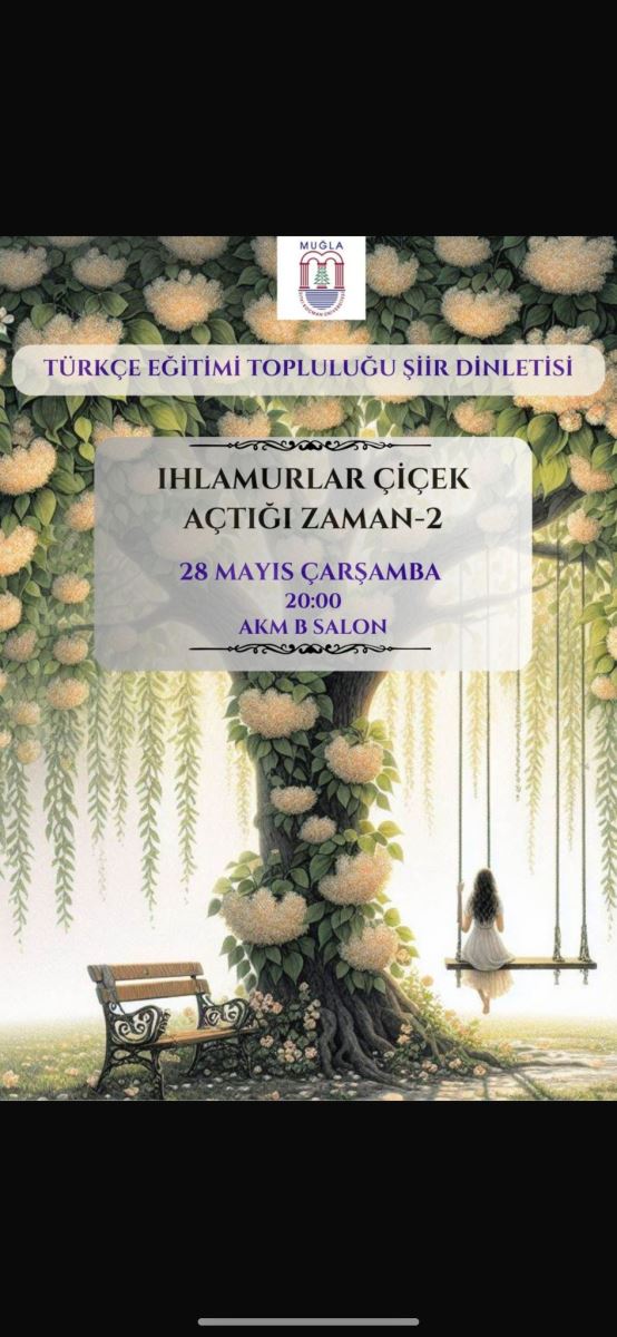 Türkçe Eğitimi Topluluğu’ndan Şiir Dinletisi: “Ihlamurlar Çiçek Açtığı Zaman-2” Muğla Sıtkı Koçman Üniversitesi Türkçe Eğitimi Topluluğu, 28 Mayıs Çarşamba günü anlamlı bir etkinliğe imza attı. “Ihlamurlar Çiçek Açtığı Zaman-2” adlı şiir dinletisi, saat 20.00’de AKM B Salonu’nda gerçekleştirildi. Etkinlikte öğrenciler ve akademisyenler, Türk edebiyatının seçkin eserlerinden şiirler seslendirdi. Dinleti boyunca salonda duygusal anlar yaşanırken, katılımcılar edebiyatın büyüleyici atmosferinde keyifli bir akşam geçirdi. Şiir dinletisi, sanatseverlere edebi bir şölen sunarken aynı zamanda üniversite topluluğunun kültürel etkinliklerine de değerli bir katkı sağladı. Son Güncelleme : 11.09.2025 14:28 Okunma Sayısı : 26